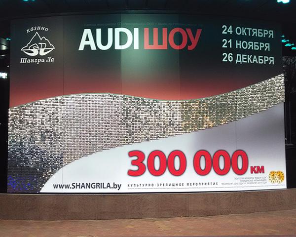 Креативное рекламное панно-плакат для оформления предстоящего большого АУДИ ШОУ в казино Шангри Ла в Минске.