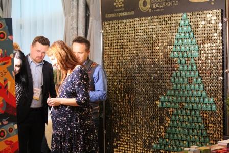 * Наша красная шапочка угощала каждого желающего «счастливым» брендированным шоколадом и приглашала к нашему потрясающему фото стенду.* И уже здесь каждый смог не только сделать, но и сразу получить в подарок красочную фотографию. Подарки на этом не заканчивались. Прямо там мы вырастили дерево-ёлку с бизнес предсказаниями/советами на 2016 год от спикеров конференции.