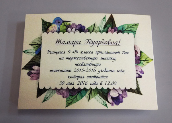 Продумайте вопросы организации до мелочей и начните с изготовления пригласительных, заказав печать пригласительных билетов в нашей собственной типографии.